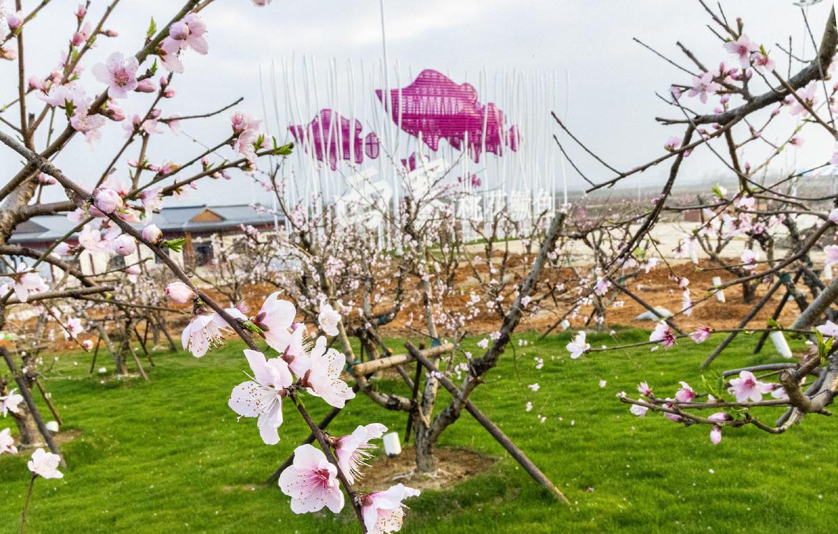 23日,大冶湖畔西塞桃花鱖魚孵化基地桃花盛開。