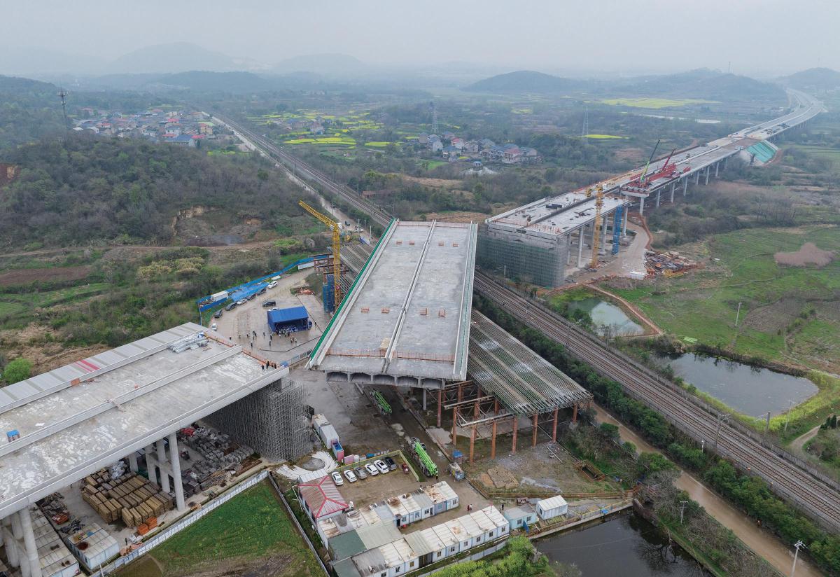 26日14時35分,花湖機(jī)場高速公路二期工程迎來關(guān)鍵進(jìn)展。經(jīng)過75分鐘精密施工,一座重量達(dá)2.6萬噸的公路轉(zhuǎn)體橋成功順時針旋轉(zhuǎn)61.1度,跨越了運(yùn)輸繁忙的武九鐵路。該橋是鄂東地區(qū)目前轉(zhuǎn)體重量最大的橋梁,刷新了區(qū)域記錄。