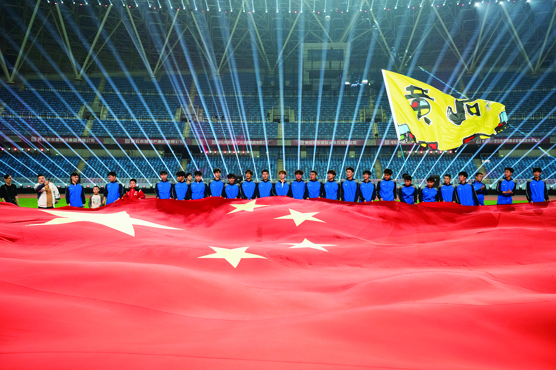 “楚超”黃石隊球員與球迷共同展示巨幅國旗 黃石融媒記者 石勇 攝