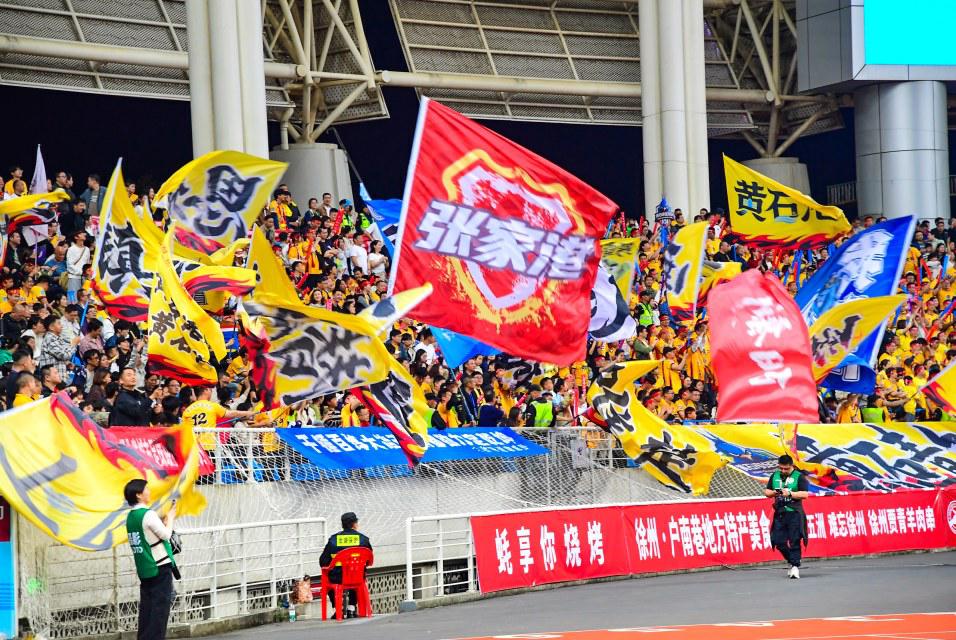 4月12日晚,大冶湖畔,黃石奧體中心通體流光,來自全國各地的球迷齊聚黃石。
