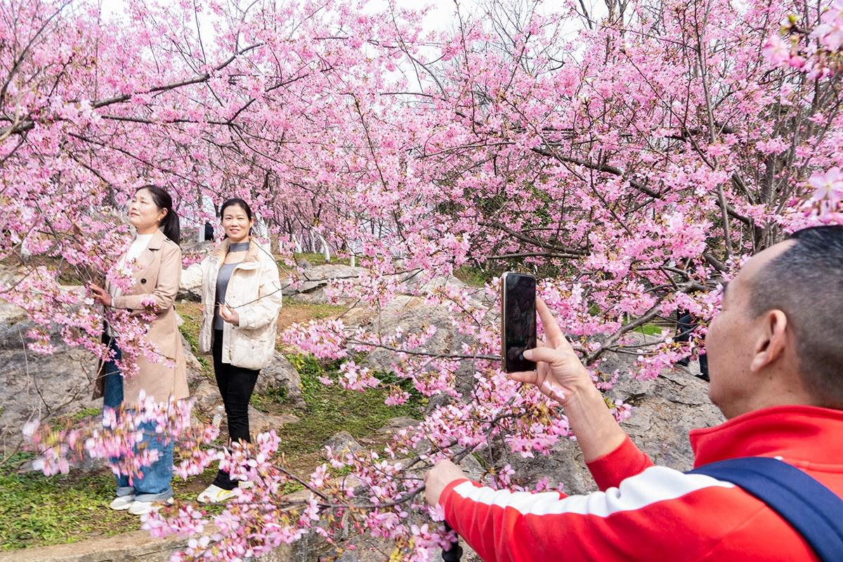 9日,不少市民來(lái)到西塞山區(qū)美林山莊櫻花谷欣賞櫻花。這里的櫻花開(kāi)花較早,因此有些市民稱(chēng)這里為“黃石第一抹春色”。 黃石融媒記者 吳山 攝