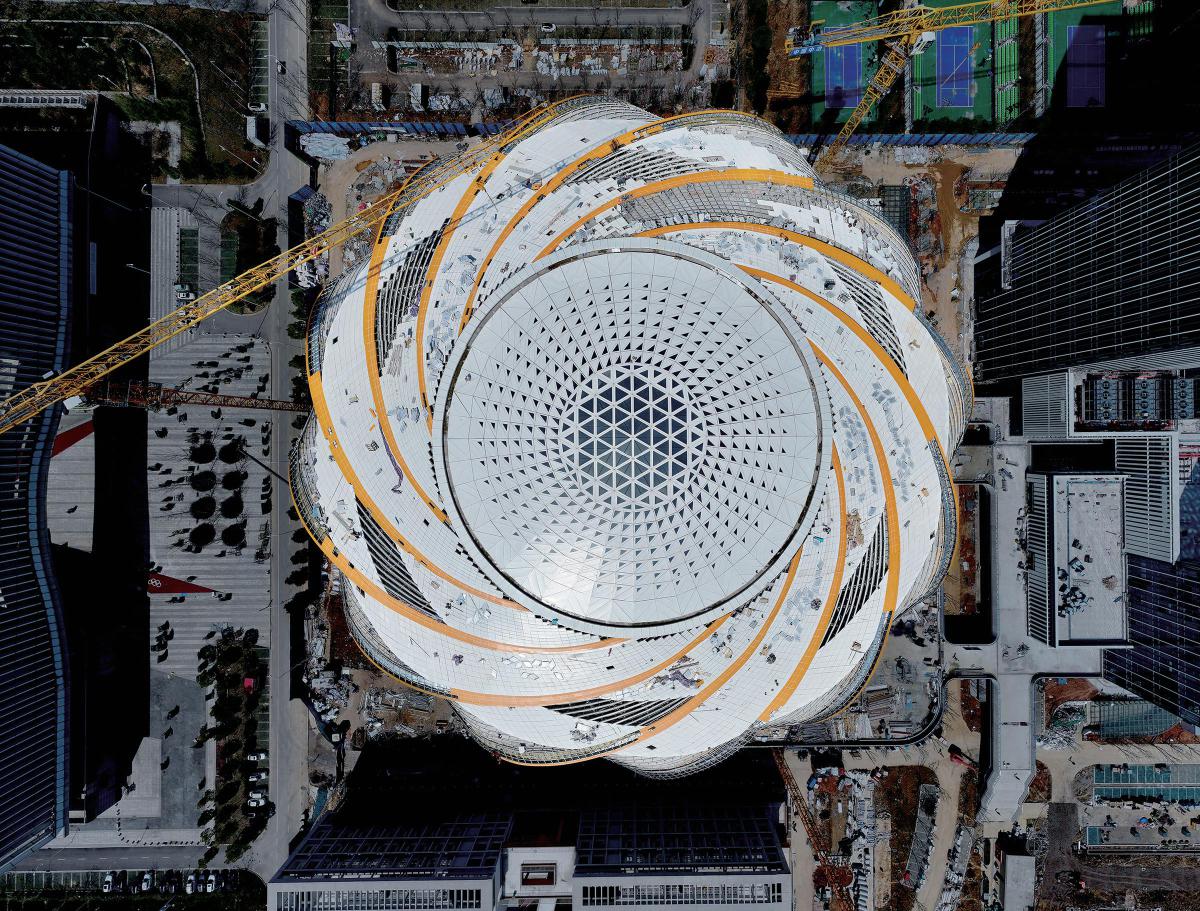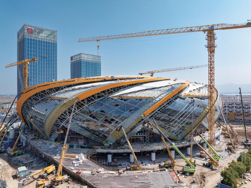 11日,黃石新國乒基地(大冶湖)施工現(xiàn)場一派繁忙,賽訓(xùn)一體館屋頂結(jié)構(gòu)鋪裝進入尾聲。白色頂棚搭配環(huán)繞的金色線條,整體造型動感十足。中國一冶黃石大冶湖核心區(qū)東區(qū)集聚開發(fā)建設(shè)工程項目部負責(zé)人介紹,場館設(shè)計以乒乓球運動核心元素——旋轉(zhuǎn)球體為靈感,將建筑外觀打造成流暢圓潤的球體形態(tài),宛如一顆在時空里躍動的乒乓球,既富有體育運動的韻律美感,更彰顯國球精神。當(dāng)前,建設(shè)者們精益求精、全力攻堅,以魯班獎為目標高標準推進項目建設(shè)。黃石融媒記者 石勇 攝