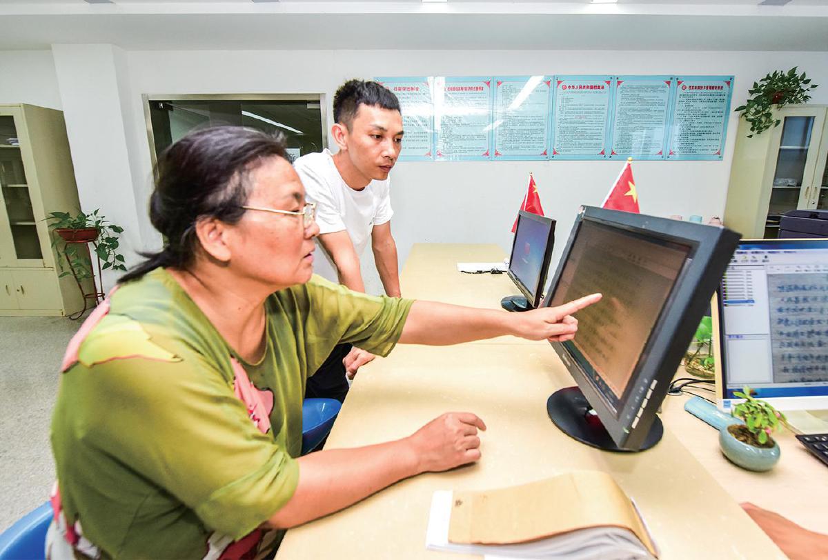 張公雄(右)和舒寶珍在陽新縣檔案館查詢資料