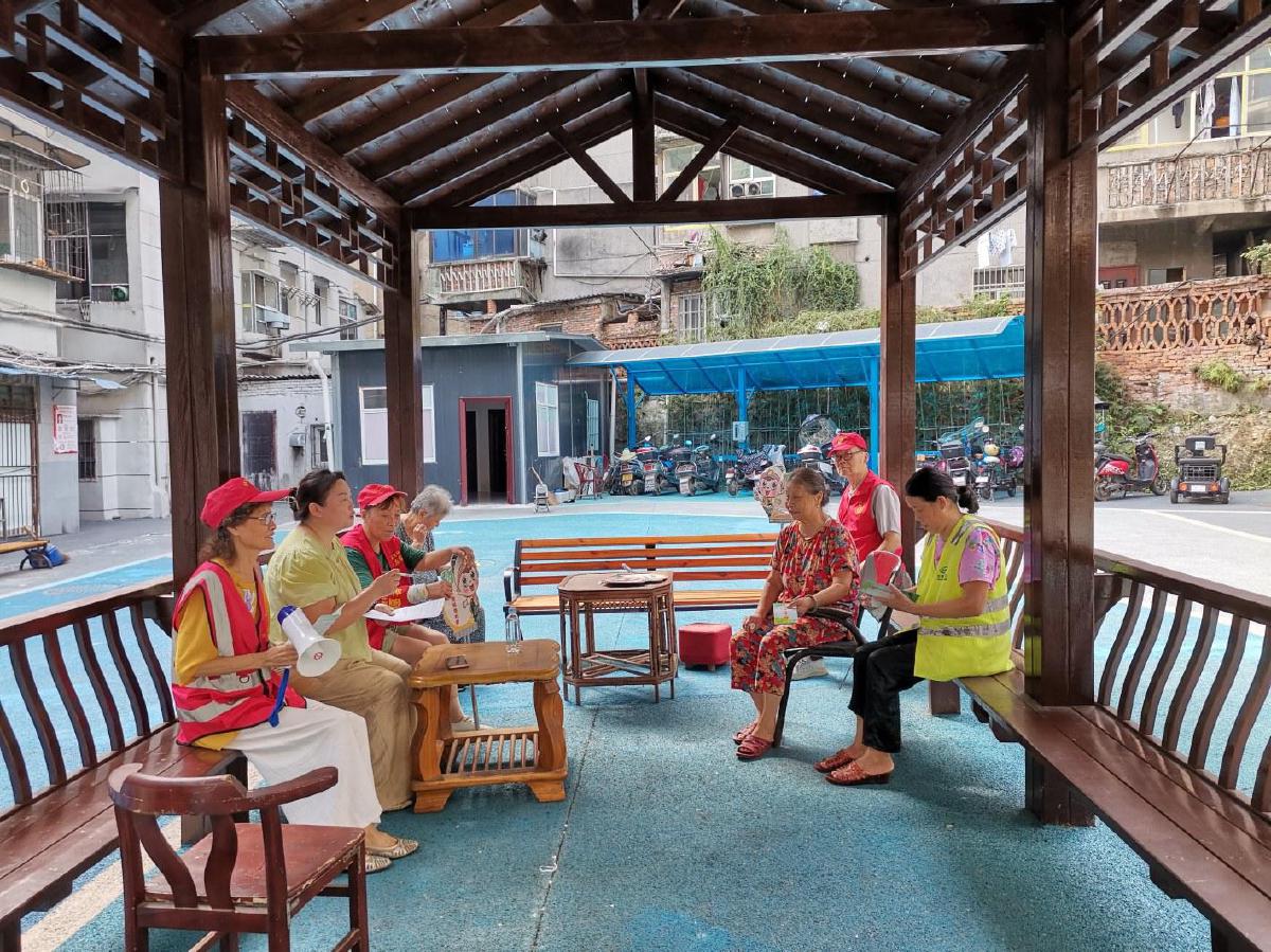 三位老太婆在小區(qū)宣傳創(chuàng)文工作