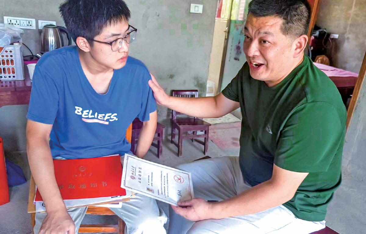 胡安康將北京大學碩士研究生錄取通知書給龔文龍看