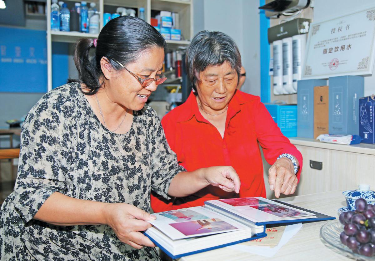 曾早紅(右)和女兒看著相冊回憶以前的生活