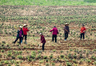 村民在茶園翻整土地