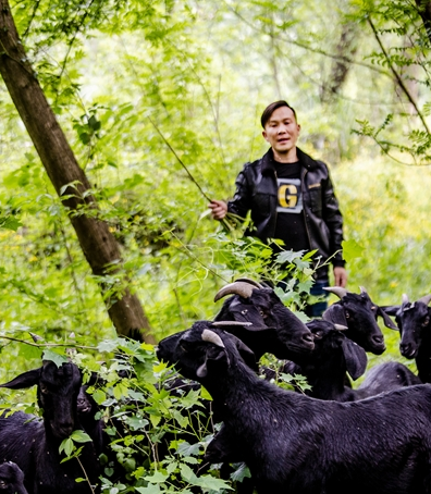 牧羊人叫柯于敏,1981年生,有著十幾年的牧羊經(jīng)驗(yàn)。他說,自己養(yǎng)的是四川黑山羊,從小吃山上的綠草長大,從來沒有吃過飼料。因采用生態(tài)養(yǎng)殖方法,柯于敏的羊在附近一帶小有名氣,不光在太子鎮(zhèn)銷售,還賣到黃石城區(qū)、大冶等地。他樂呵呵地說:“過年賣到80元一斤,去年賣了十幾萬。目前有100多只羊,黑山羊長得快,到了過年能長到兩百斤?!?/p>