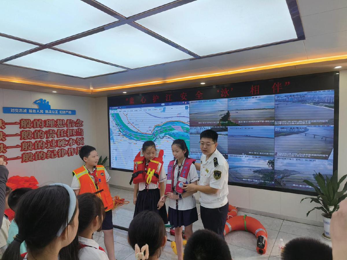 “夏季的長江像匹野性子的駿馬,水流急得能拽著人跑,千萬別偷偷下水跟它‘較勁’哦?!?8月6日上午,在位于上窯江灘公園的黃石海事局黃石港區(qū)海事處躉船上,一堂別開生面的防溺水安全課正在進行,來自黃石城區(qū)的30名小學(xué)生全神貫注地聽講。