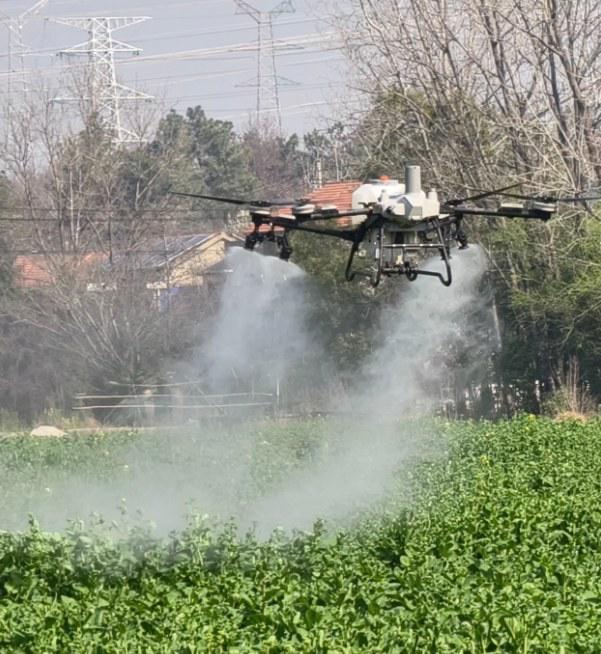 農(nóng)用無(wú)人機(jī)在飛手操控下精準(zhǔn)升空,沿預(yù)設(shè)航線勻速作業(yè)