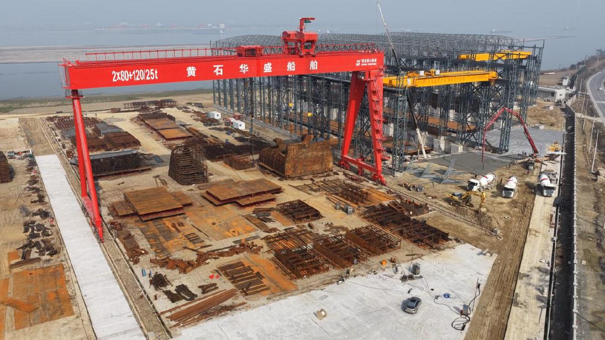 2月11日(農歷臘月廿四),南方小年。記者來到位于陽新縣富池鎮(zhèn)的黃石華盛船舶重工有限公司的廠區(qū),原以為臨近春節(jié),船廠會很安靜,但眼前的景象恰恰相反——建廠房和造船同時進行著,龍門吊巍然矗立,鋼鐵手臂此起彼伏,工人們攀在數(shù)艘并排建造的巨輪骨架上,像一群貼著鋼鐵飛翔的燕子。