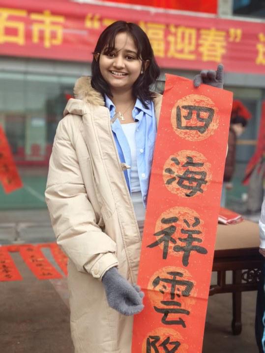 方月則表示,每一個漢字精美又韻味十足,一筆一畫都透著藝術(shù)魅力。通過親手寫春聯(lián),她真切觸摸到了中國書法的深厚底蘊,也感受到了中華傳統(tǒng)文化的博大精深。“中國書法太美了,春節(jié)也很有意義,我很喜歡這樣的體驗?!彼嬲\地說。